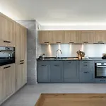 - ❓Is there a kitchen available at this spacious apartment for guest use?Yes, this spacious apartment is furnished with a fully furnished kitchen and offers an electric kettle, a refrigerator, and kitchenware as well.